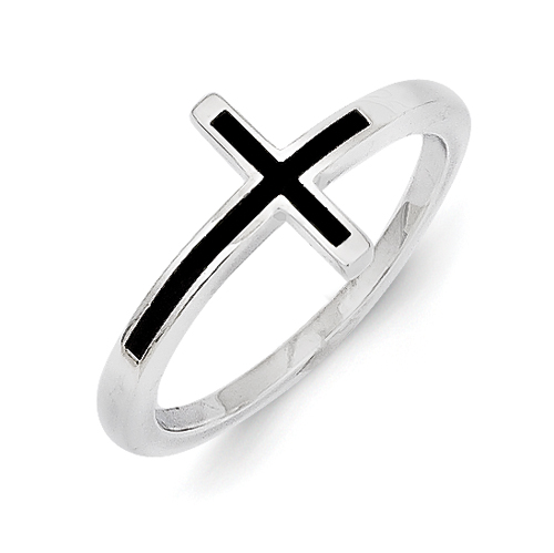 So let us present this 925 Sterling Silver sideways cross ring with a black antiqued cross in the center.