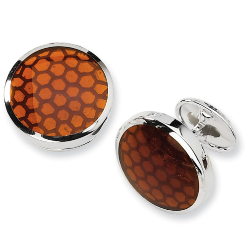 These handsome 925 Sterling Silver and brown resin cuff links will get attention.